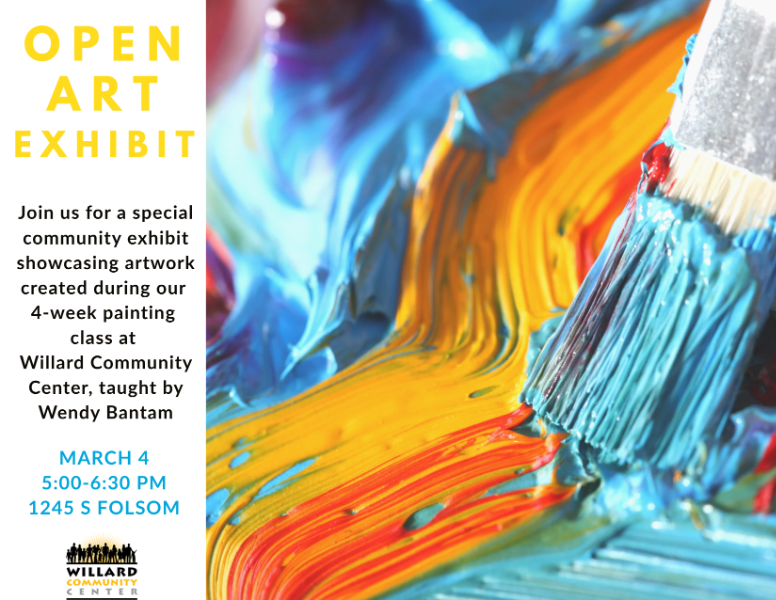 Willard Community Center is proud to host a special open art exhibit celebrating the completion of our recent 4-Week Painting Class, taught by Wendy Bantam. The exhibit will take place on March 4 from 5:00–6:30 PM and is open to . . .