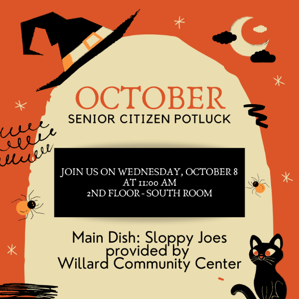 Join Willard Community Center for the monthly aging adult & senior citizen potluck! Wednesday, October 8 11:00 AM - 12:00 PM 2nd floor South Room (elevator available) Willard Community Center will provide the main dish of . . .